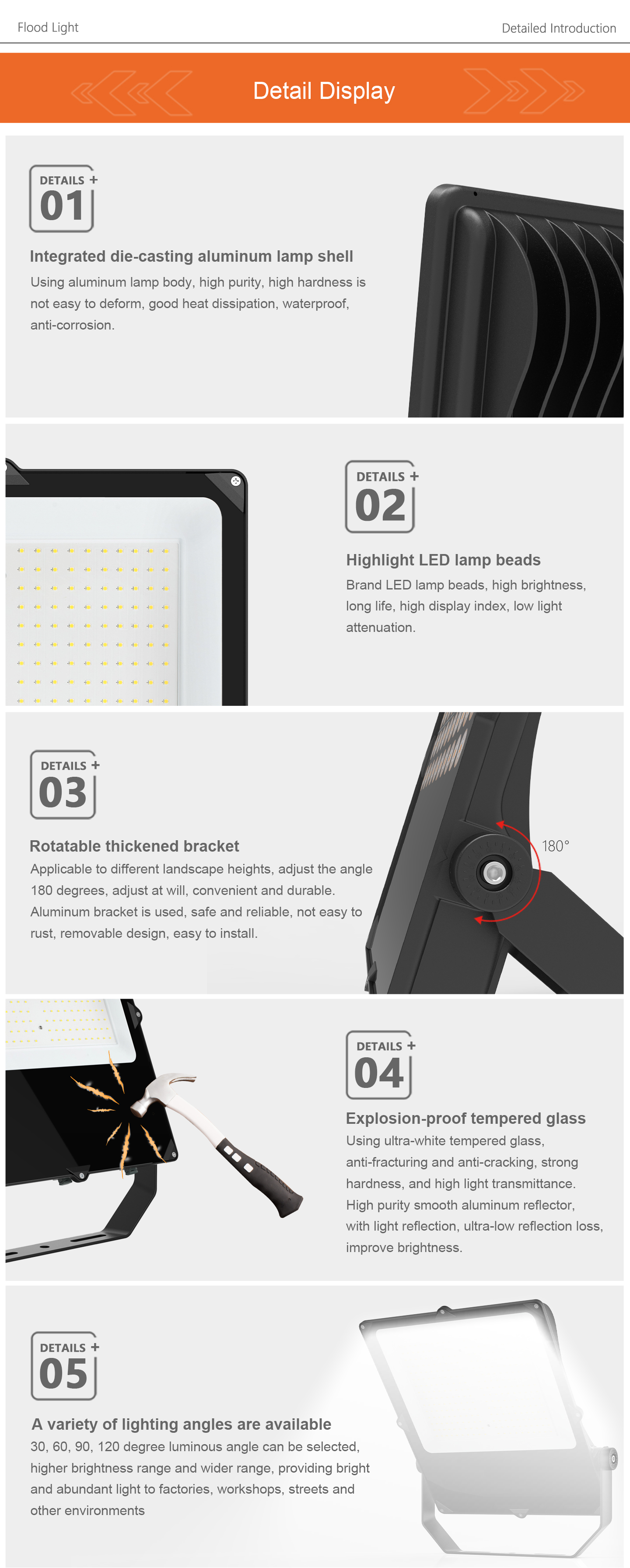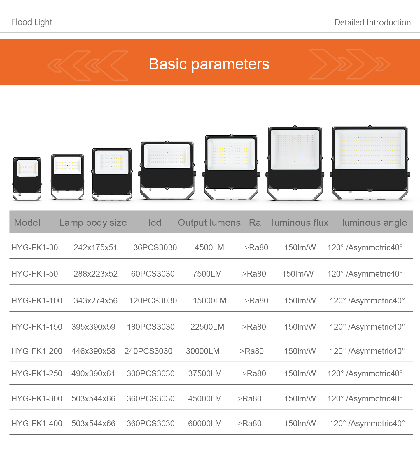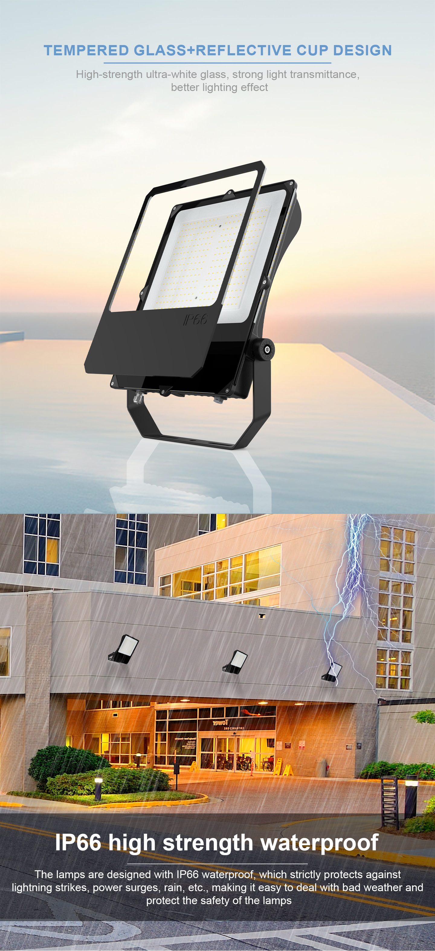 FK1 LED Floodlight is a cost-effective solution for high performance fixtures designed for outdoor lighting, with private molded design, clean and airy appearance, complete wattage range and optional light distribution for a wide range of applications.The light distribution is suitable for different applications, even stadiums and billboards, warehouses, it can also be used as a street light with a sliding mounting bracket.Its housing is made of high quality die-cast aluminum with special anti-corrosion treatment, IP66 protection level, flexible and easy to install, and the adjustable bracket makes the irradiation angle more accurate, FK is the best choice for outdoor lighting with its excellent performance, providing you with efficient and reliable lighting solutions.